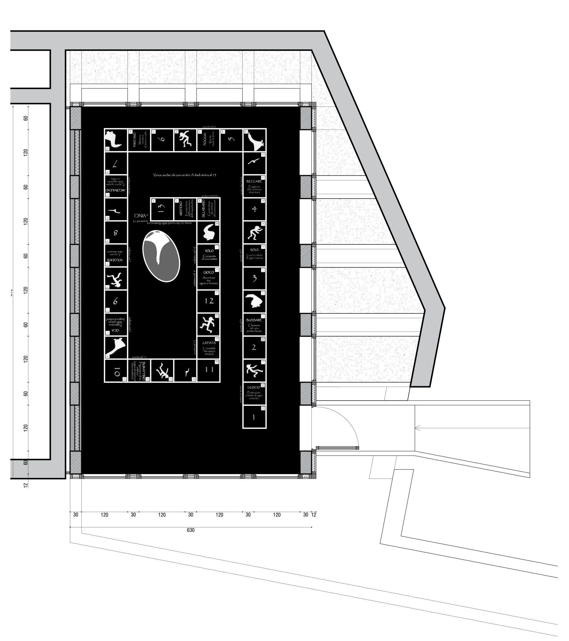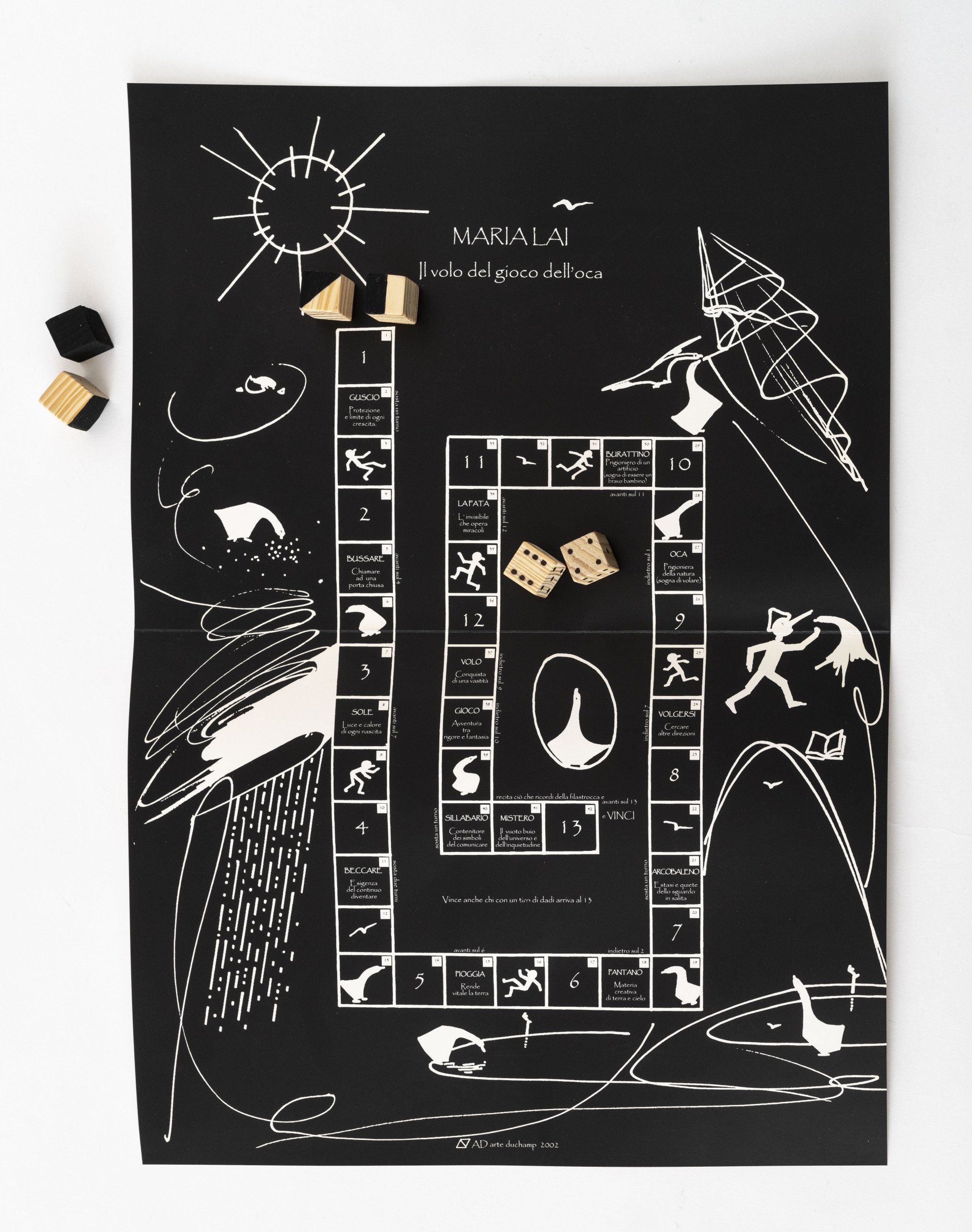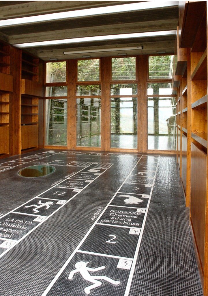 il suo nome al mosaico del Gioco del volo dell’oca, opera di Maria Lai, disposto sul pavimento dell’aula al piano primo dell'edificio.