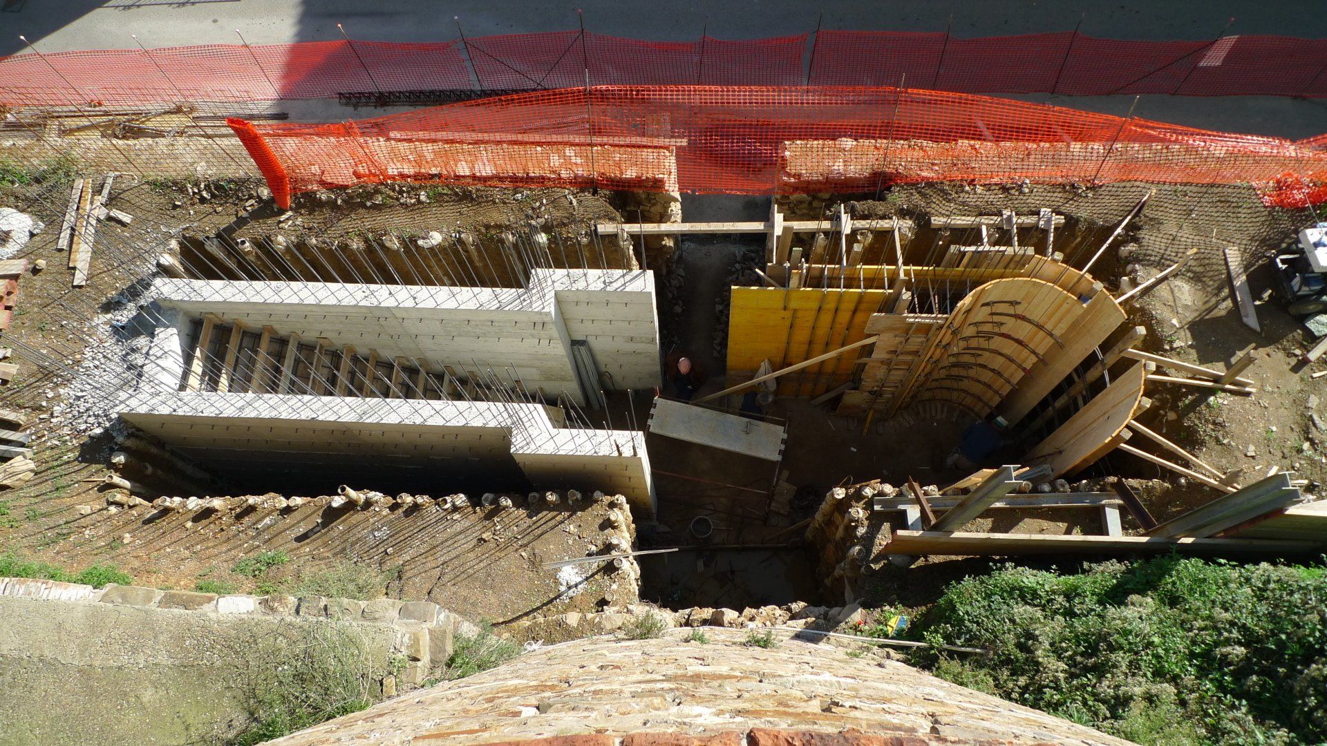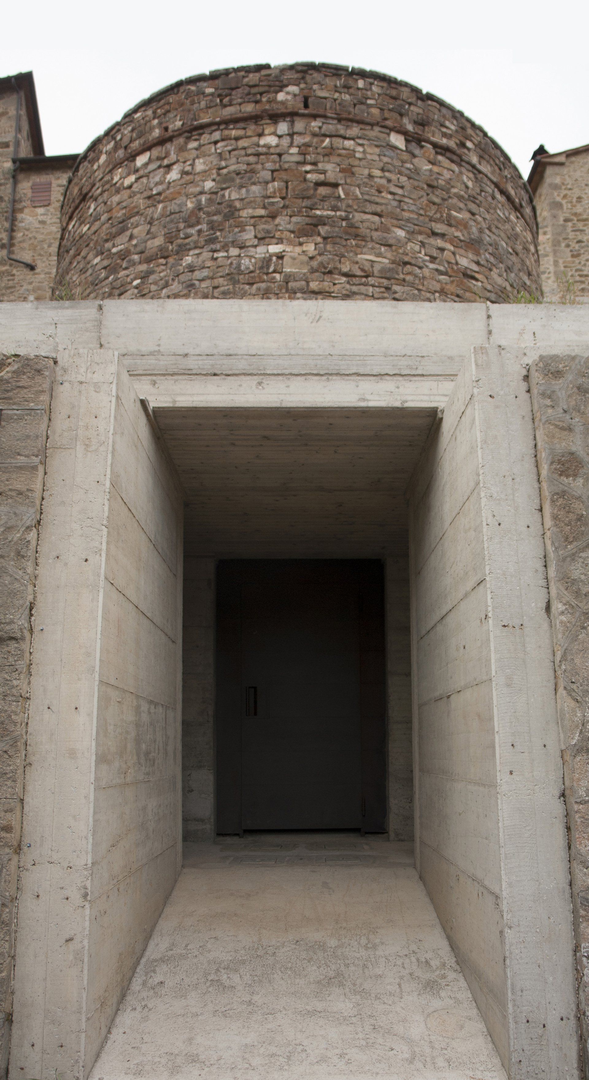 La scelta di progetto è stata di destinare questo spazio alla dimensione sotterranea, invisibile del paesaggio: porta fisica e simbolica della città e del Museo della Terra e dell'Olivastra di Seggiano.