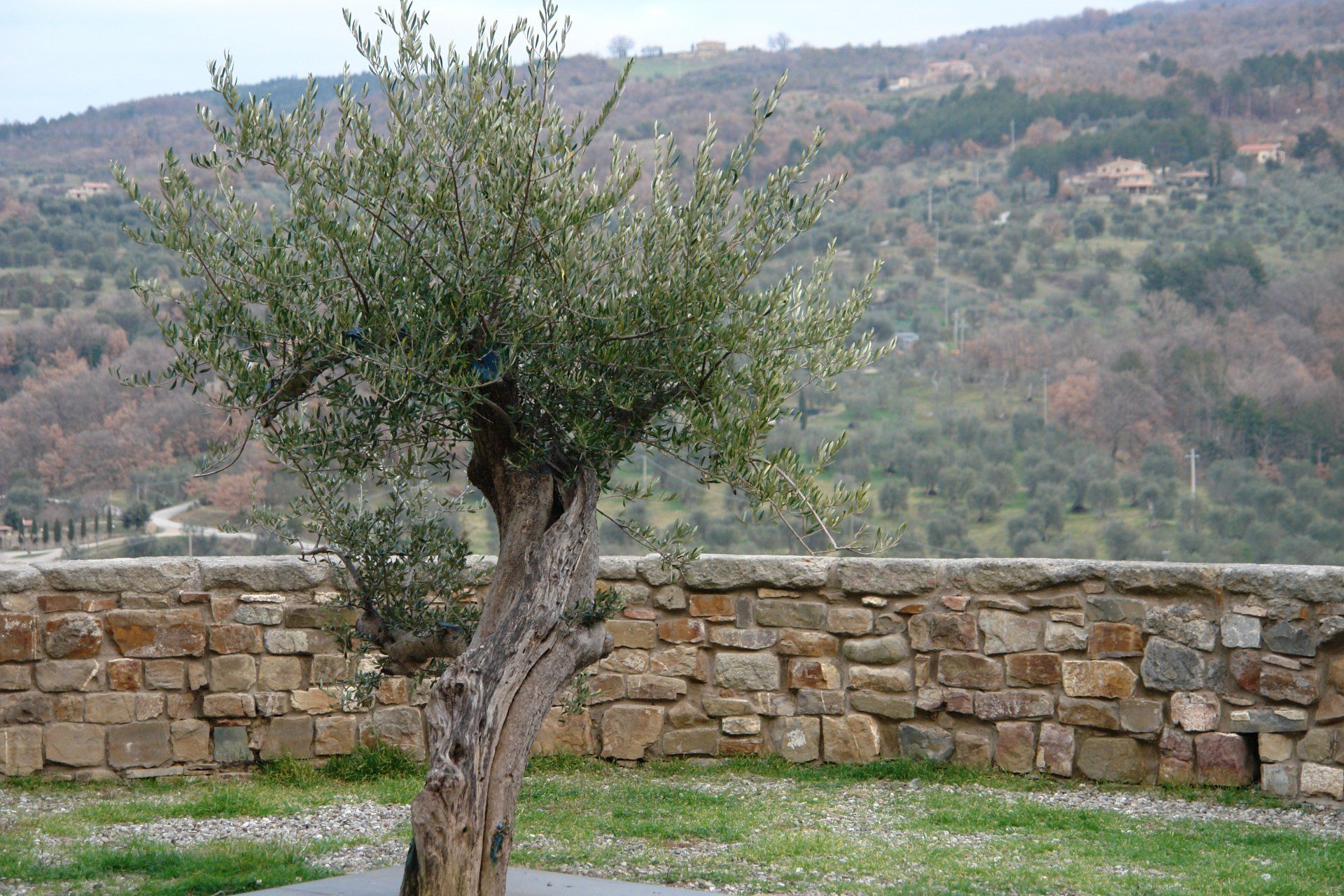 Nella cisterna, resa accessibile attraverso una nuova volumetria ipogea, si può osservare l'apparato radicale di una pianta di olivastra seggianese, fissata in chiave alla volta.