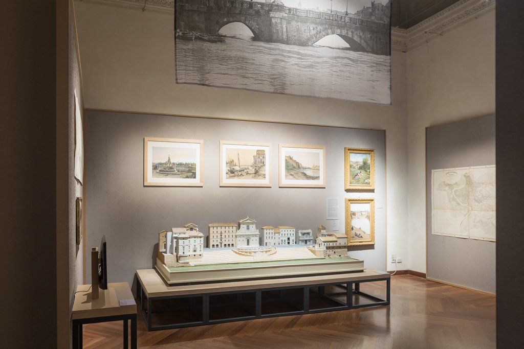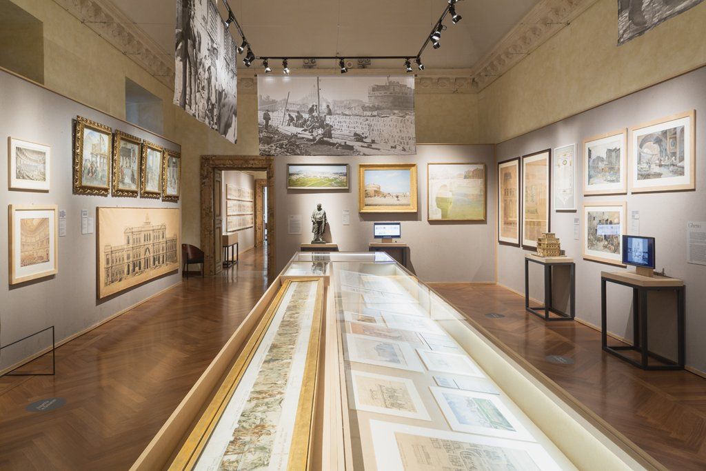 The exhibition, housed on the main floor of the Museum of Rome, in the eighteenth-century Palazzo Braschi in Piazza Navona, covers about 1300 square metres and displays an extraordinary number of works, over 700, of different sizes and types (paintings, drawings, models, documents, films, photographs, posters, etc.).
